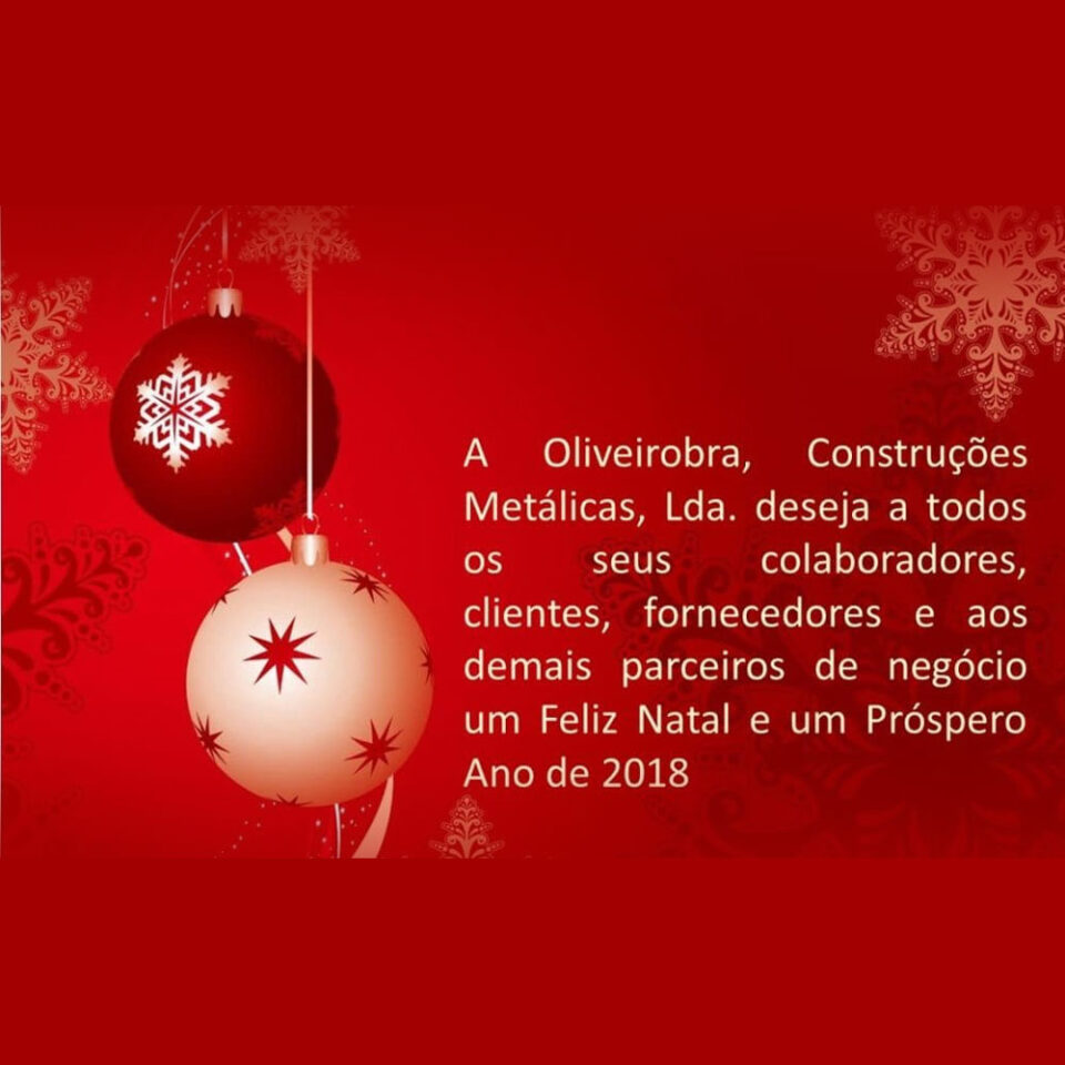 A Oliveirobra Construções Metálicas, Lda deseja a todos os seus colaboradores, clientes, fornecedores e aos demais parceiros de negócio um Feliz Natal e um Próspero Ano de 2018.