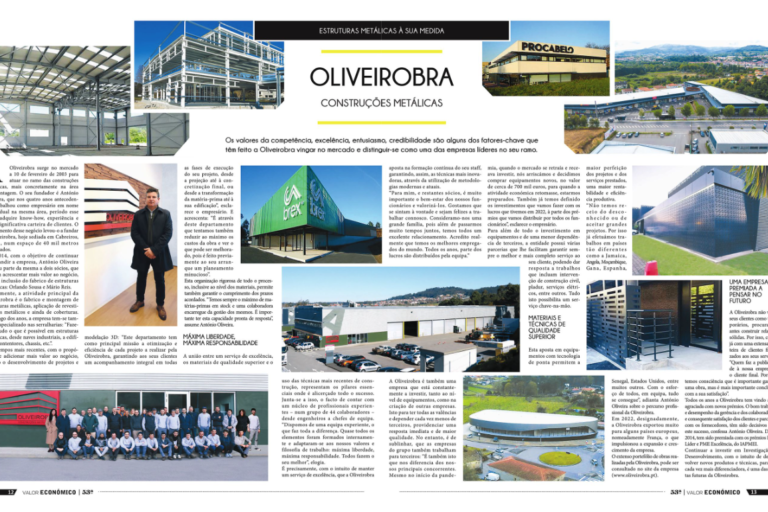 É com enorme orgulho que a Oliveirobra – Construções Metálicas Lda anuncia a atribuição do estatuto de PME Líder 2016